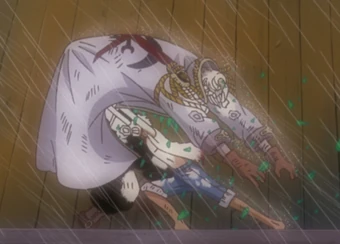 A subplot in the movie. On the starting island of the race the crew is introduced to that year's favorite, general gasparde, a former navy general who deserted after killing his men. Luffy and crew arrive at the harbour of anabaru. Kaisokuou ni ore wa naru, 2000. La aventura sin salida (spanish).